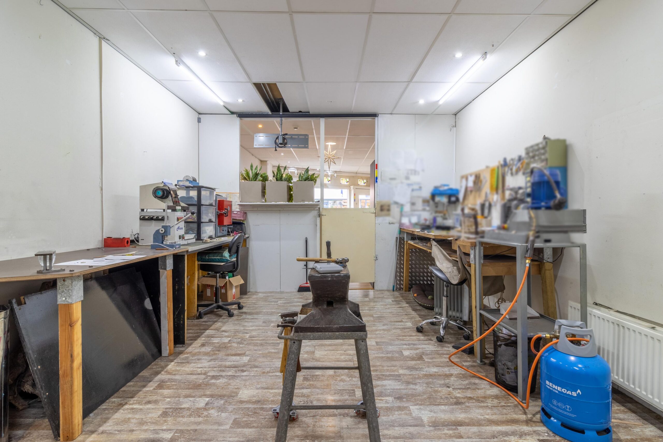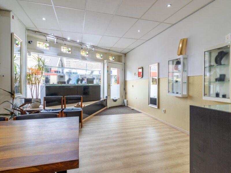 De winkelruimte heeft een oppervlakte van circa 70 m² en beschikt over een nette verkoopruimte met grote etalage, die zorgt voor optimale zichtbaarheid en daglicht. Achter de winkel bevindt zich een werkplaats of atelier, ideaal voor ambachtelijke of creatieve bedrijfsvoering. Daarnaast is er een opslagruimte, keuken en toilet aanwezig.