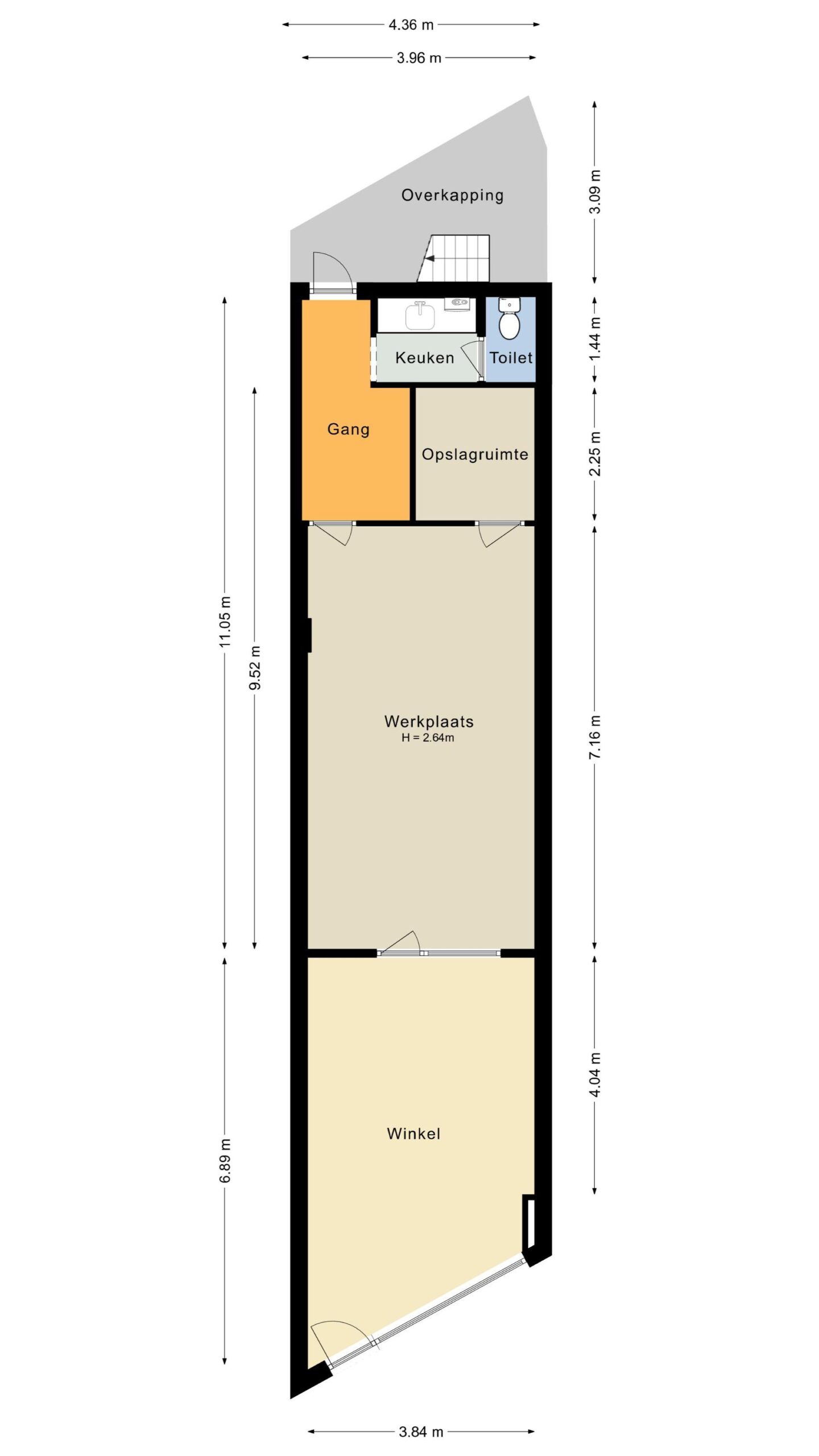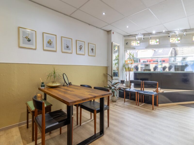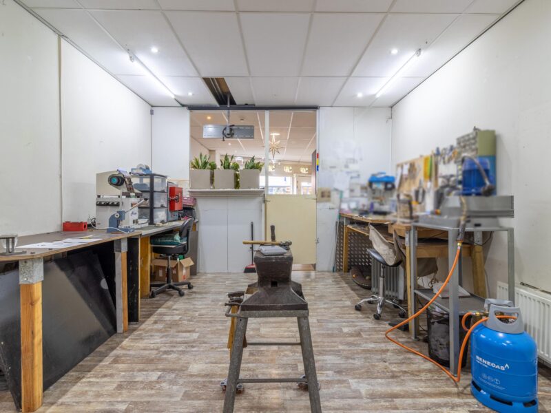 - Indeling: winkelruimte, werkplaats, opslag, keuken en toilet