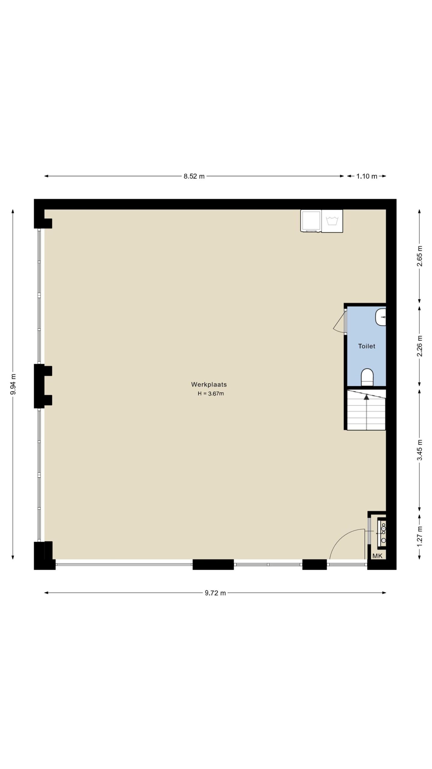 De begane grond is ideaal als bedrijfs- of opslagruimte. De eerste verdieping leent zich uitstekend voor kantoor, showroom of aanvullende werkruimte. De tweede verdieping is compact maar functioneel en biedt directe toegang tot het terras, perfect als kantoorruimte of overlegplek met buitenruimte. Het pand is, in overleg met verhuurder, nog volledig naar wens in te richten.