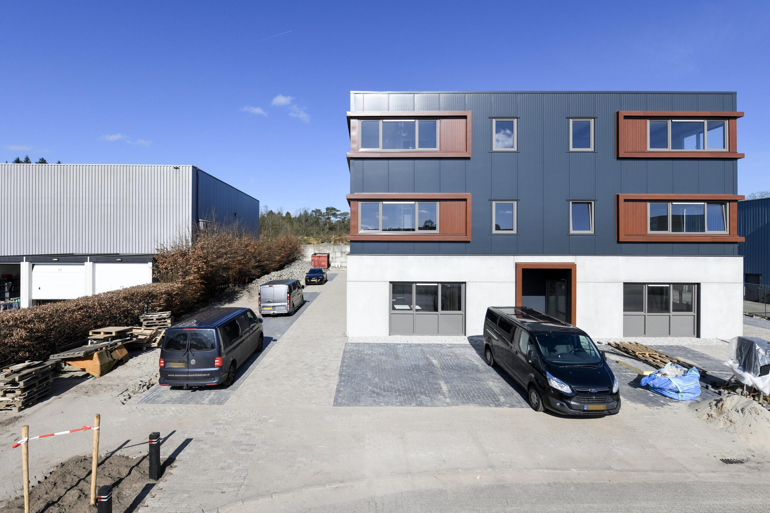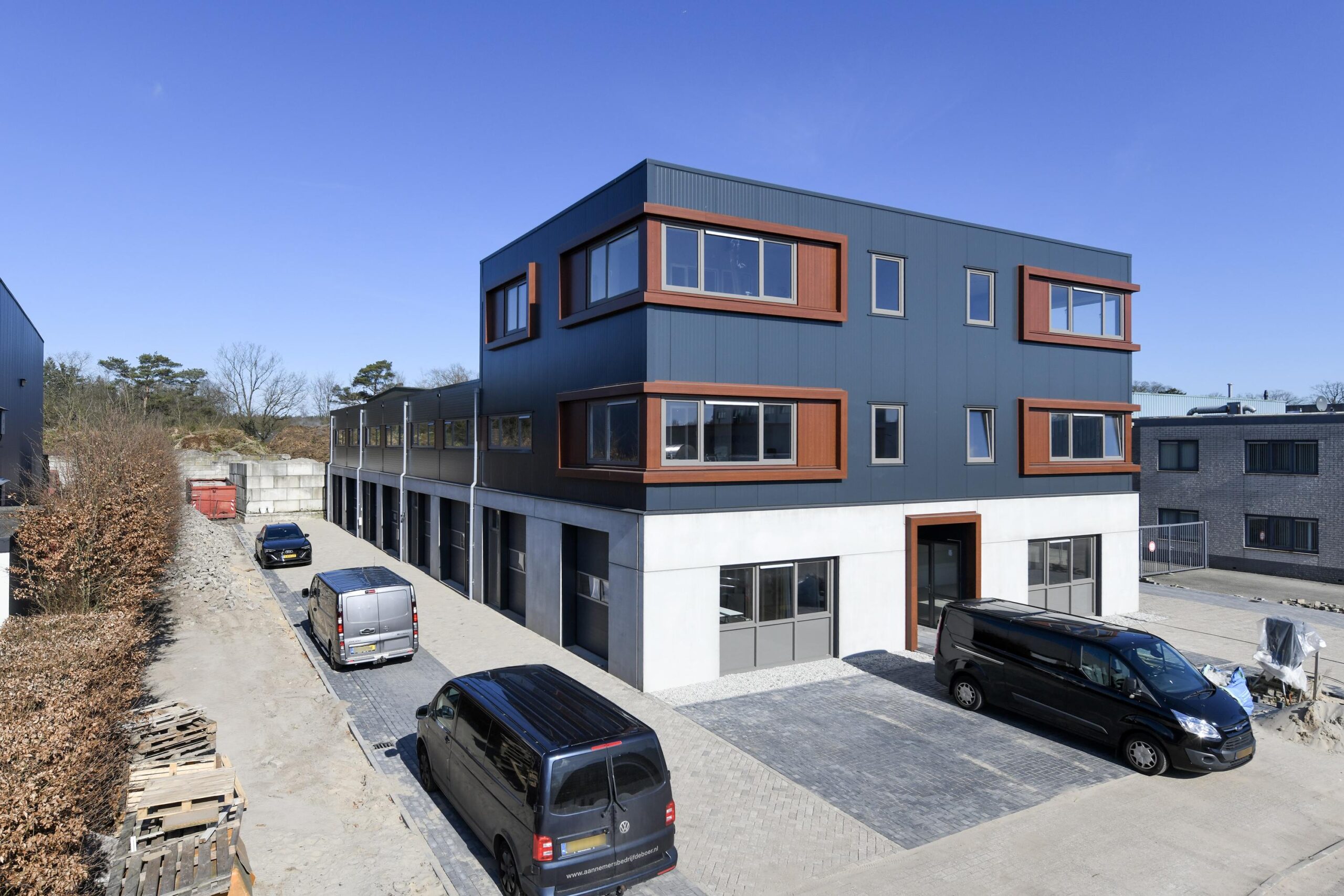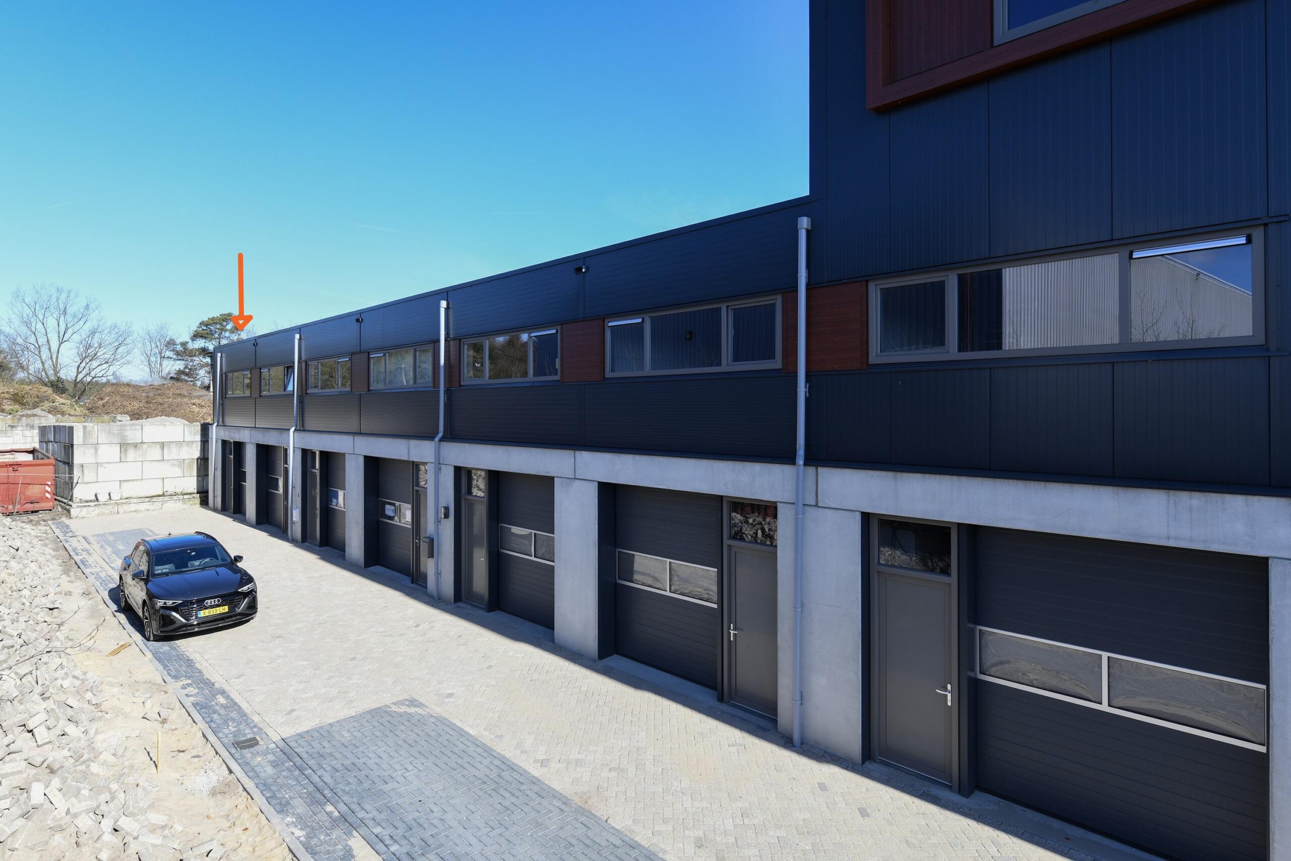 Als kopunit profiteert deze bedrijfsruimte van extra zichtbaarheid en daglicht. Het gebouw is strak vormgegeven met een moderne, eigentijdse uitstraling, passend bij een professionele bedrijfsvoering.