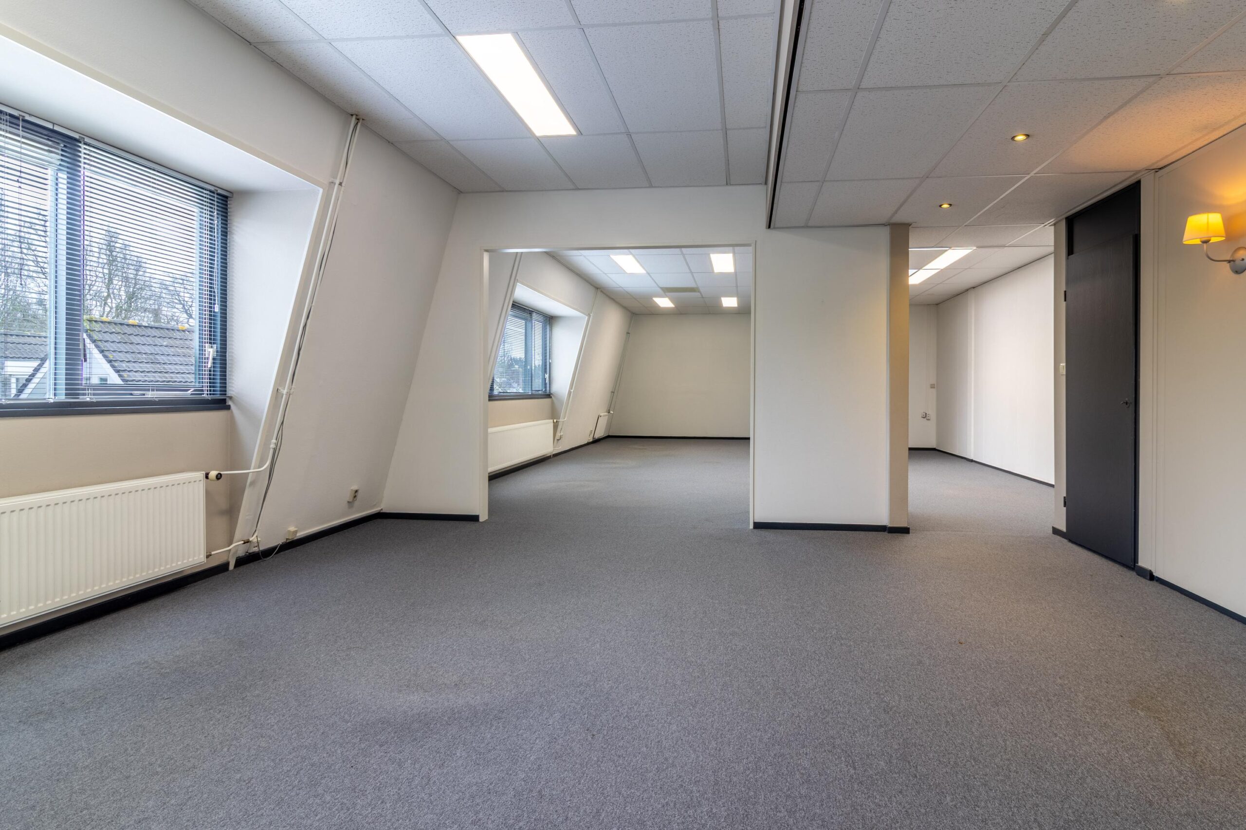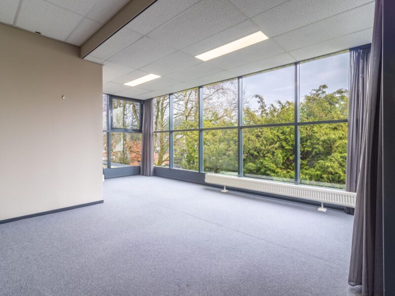 Aan de Nieuweweg 109 in Soest bevindt zich het moderne kantoorgebouw 'Parkstaete'. Hier bieden wij op de 2e verdieping deze royale kantoorruimte te huur aan. Dit is een combinatie van ruimte 1 en 2 die wordt verbonden met een, nieuw te plaatsen, toegangsdeur. De ruimte is uitermate geschikt voor kantoorhoudende organisaties die op zoek zijn naar een praktische en verzorgde werkomgeving op een goed bereikbare en centrale locatie in Soest.