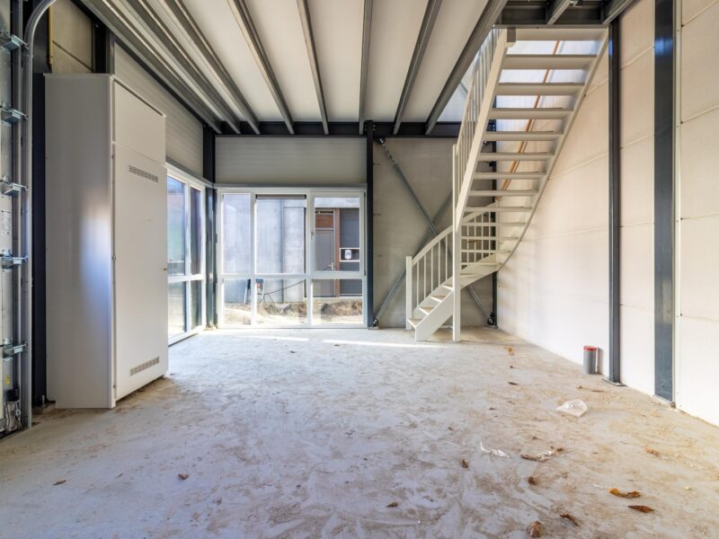 De bedrijfsunit bestaat uit een praktische bedrijfsruimte op de begane grond met een overheaddeur en een verdiepingsvloer die uitstekend geschikt is voor kantoor, opslag of een andere invulling die past bij jouw bedrijfsvoering.