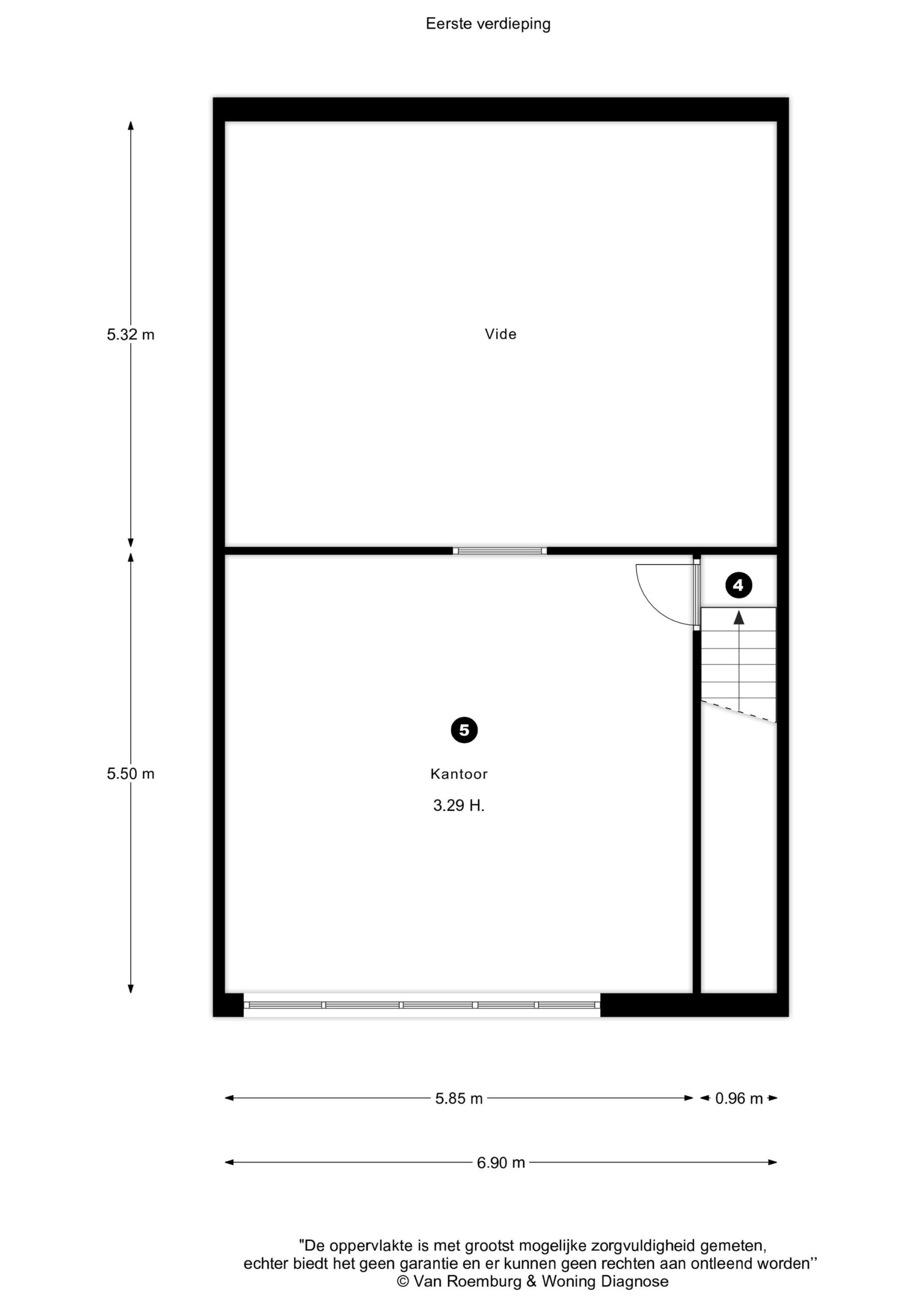 circa 33 m2 verblijfs- kantoorruimte (verwarmd & gekoeld) op de eerste verdieping