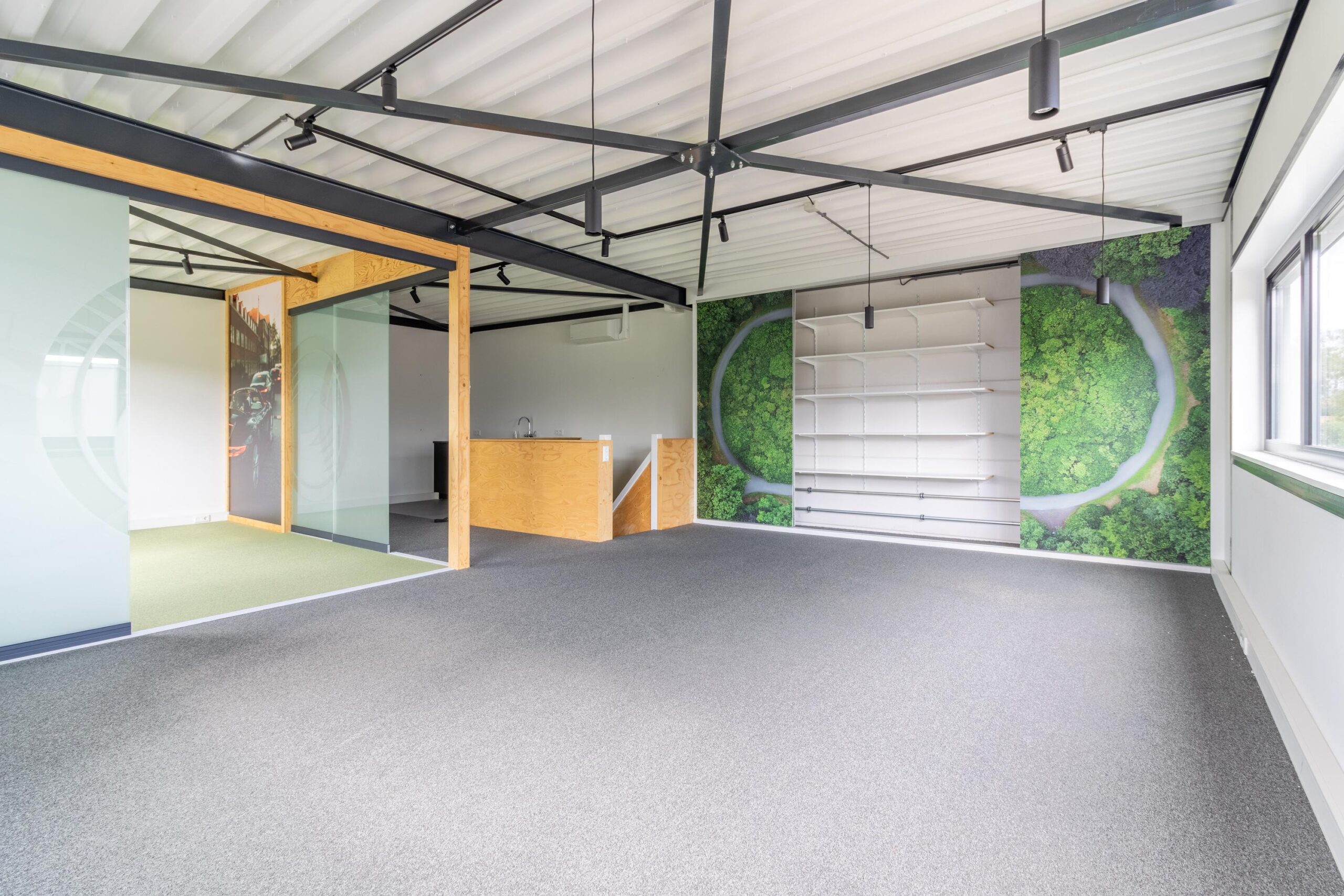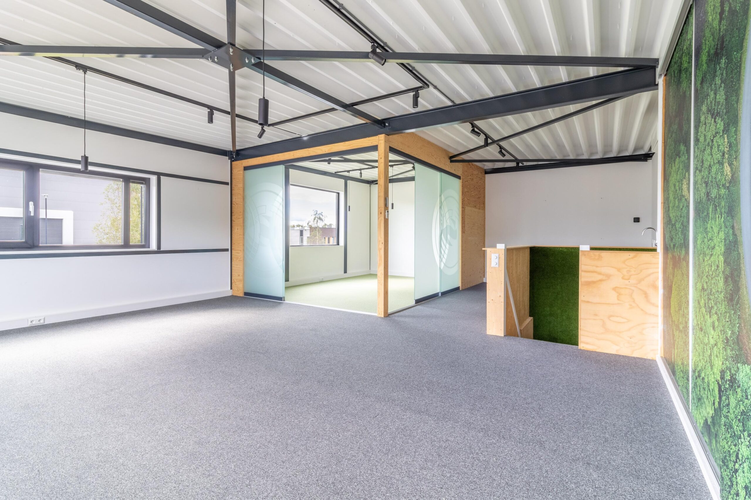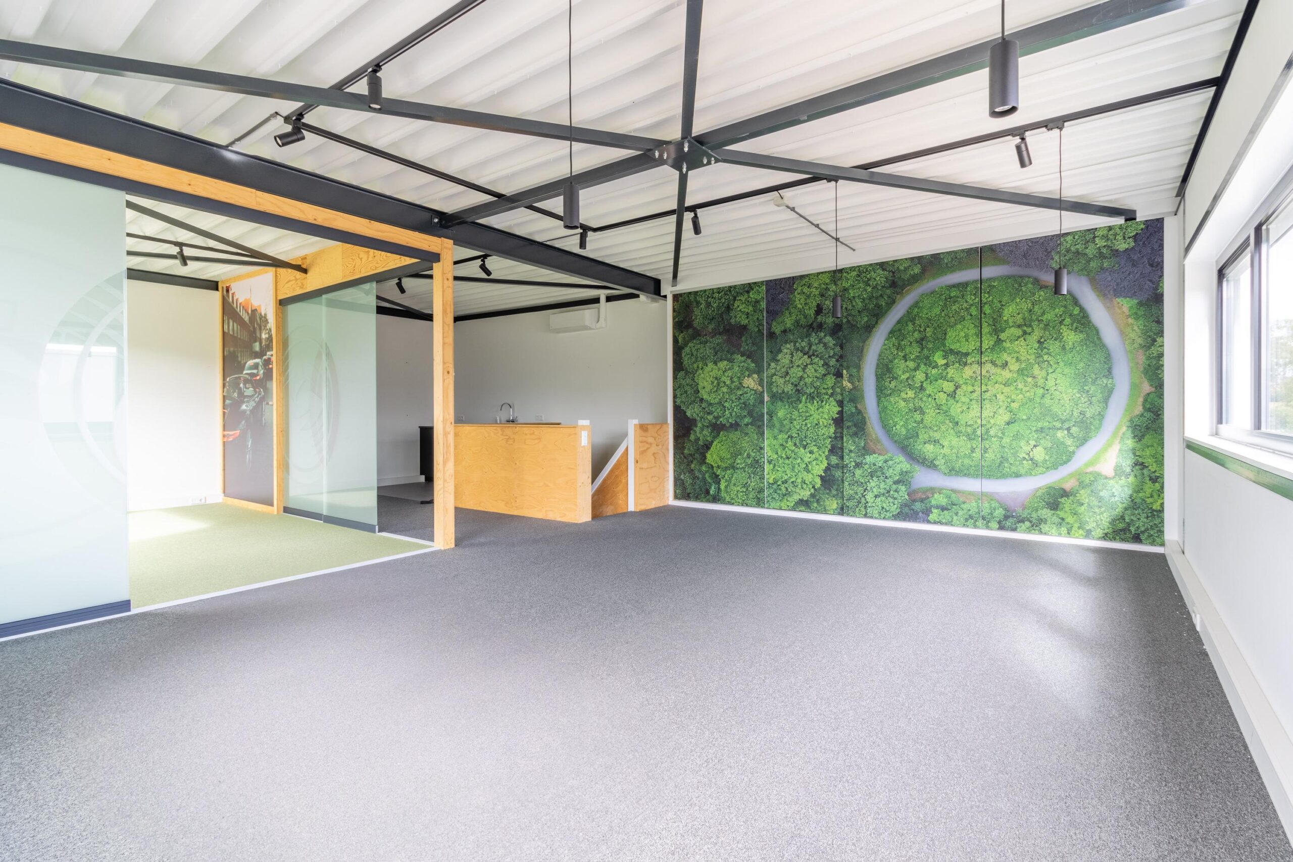 De eerste verdieping is ingericht als lichte en comfortabele kantoorruimte. Dankzij de grote ramen, airconditioning en geïntegreerde verlichting is het een prettige werkomgeving met een professionele uitstraling. Een gedeelte van de ruimte is d.m.v. glazen deuren af te sluiten. Tevens is er een pantry aanwezig.