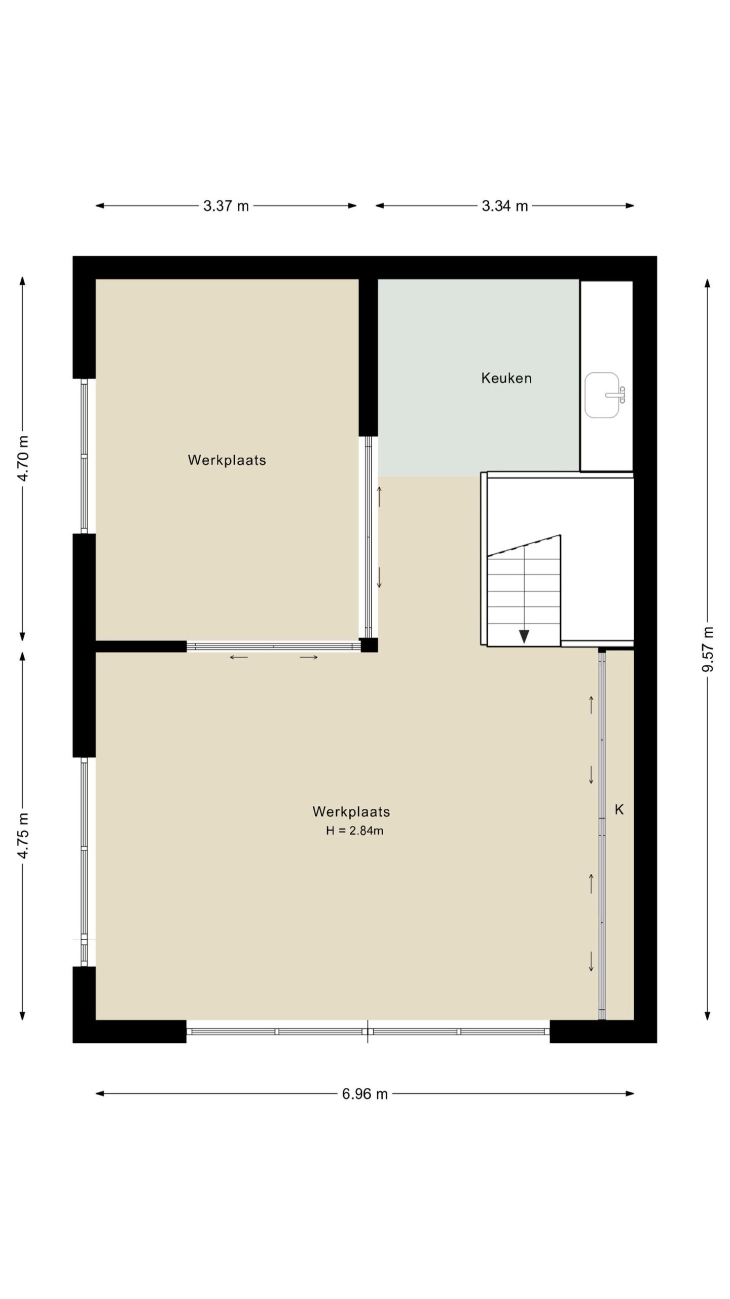 De begane grond is ideaal als opslagruimte of werkplaats, maar kan ook prima dienen als kantoor. De ruimte beschikt over een loopdeur, vloerverwarming, toilet en zelfs een douche.